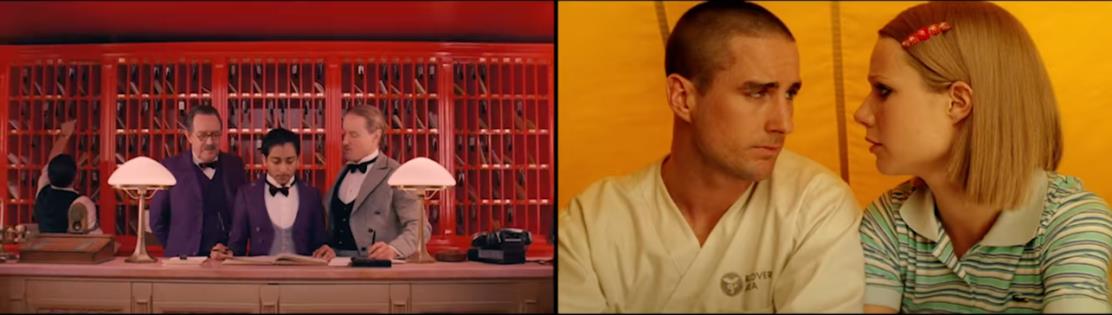 Figura 1: O uso predominante do vermelho em “O Grande Hotel Budapeste” (a) e do amarelo em “Os Excêntricos Tenenbaums” (b)