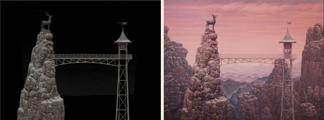 - Figura 13: Uso de miniatura e pintura digital em "O Grande Hotel Budapeste"