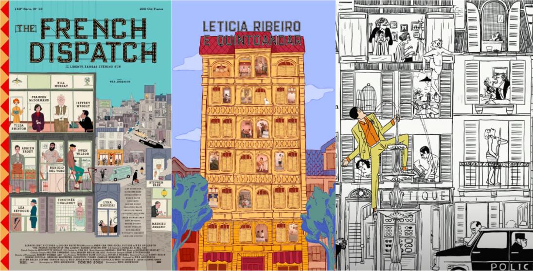 Montagem a partir de imagens coletadas de O Espetacular Curso do Coolmmerce (2021), Ilha dos Cachorros (2018) e A Crônica Francesa (2021). ↩