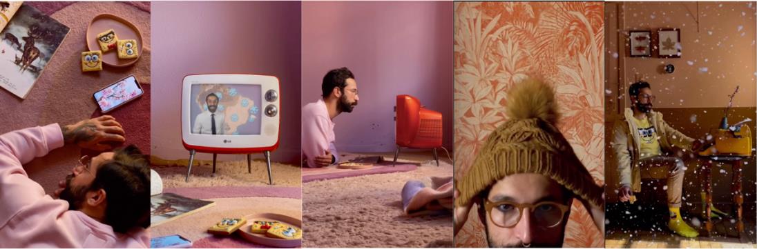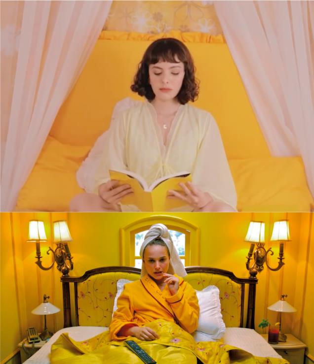 Os recursos estéticos utilizados nesse vídeo que se assemelham à composição visual de Anderson são: uso da fonte Futura nos elementos gráficos, plano zenital, plano planimétrico, presença de elementos vintage e a paleta de cores em tons pastéis.